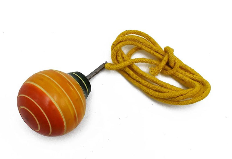 Engage your little one in loads of fun with this handcrafted and colourful Channapatna wooden toy. String Spinning Top with handle and thread. Spins undisturbed for a long time. A medium sized wooden top with handle and thread. Place the activity toy on any smooth surface, gently hold and pull the string top, and watch it spin, A baby will love to see the top spin and a toddler or pre-schooler will enjoy learning to spin the tops. Older children can have spin-offs with their friends or siblings. This timeless learning activity toy can be carried anywhere and enjoyed by children and adults alike! Fine motor skills: Holding and spinning the top will hone your little one’s fine motor skills. Curiosity: The wonder of a spin top invokes curiosity in children to learn how the top works and spin it themselves