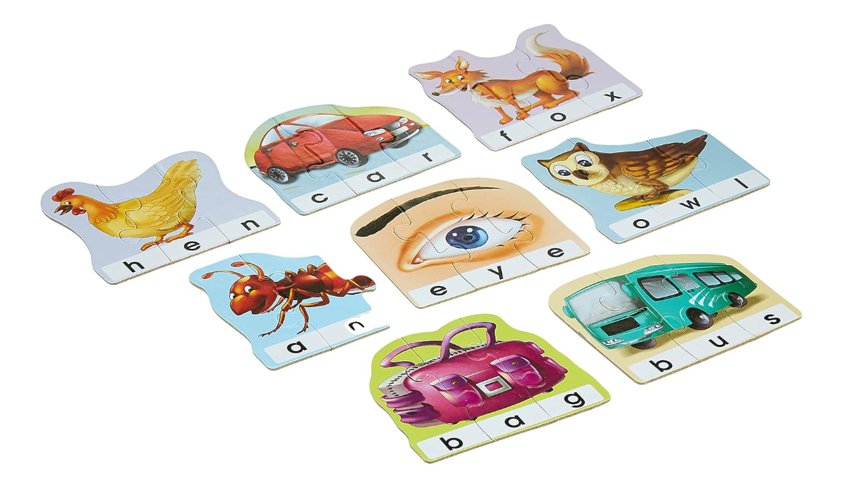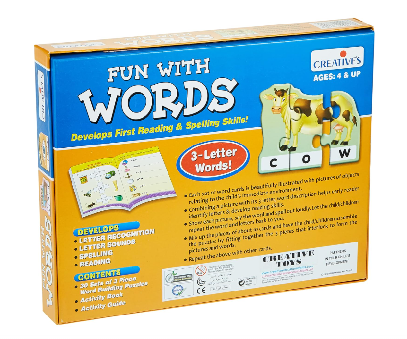 Spelling Puzzle Cards See the Picture, Make A Word & Learn the Spelling. This set has 1 Card Holder, 60 cards (both sides printed) & 52 Alphabet titles the perfect early childhood education toy. STEP 1 Set the Card Holder on a table & take all the Alphabets tiles with picture cards. STEP 2 Insert a Card in the holder in such a way that only picture is visible & not the word. STEP 3 Ask the Child to identify the Picture & Spell it by placing the correct Alphabet tiles on the card holder Spelling games helps develop children's memory skills, hand-eye coordination skills, strategic thinking skills, concentration, stimulate their curiosity, enhance their vocabulary, and let children know more words. Enhances Object & Letter Recognition, Increase Attention Span & Memory, Word Building, Spelling & Pronunciation It is very suitable for pre schoolers, English beginners, kindergartens, and Special children