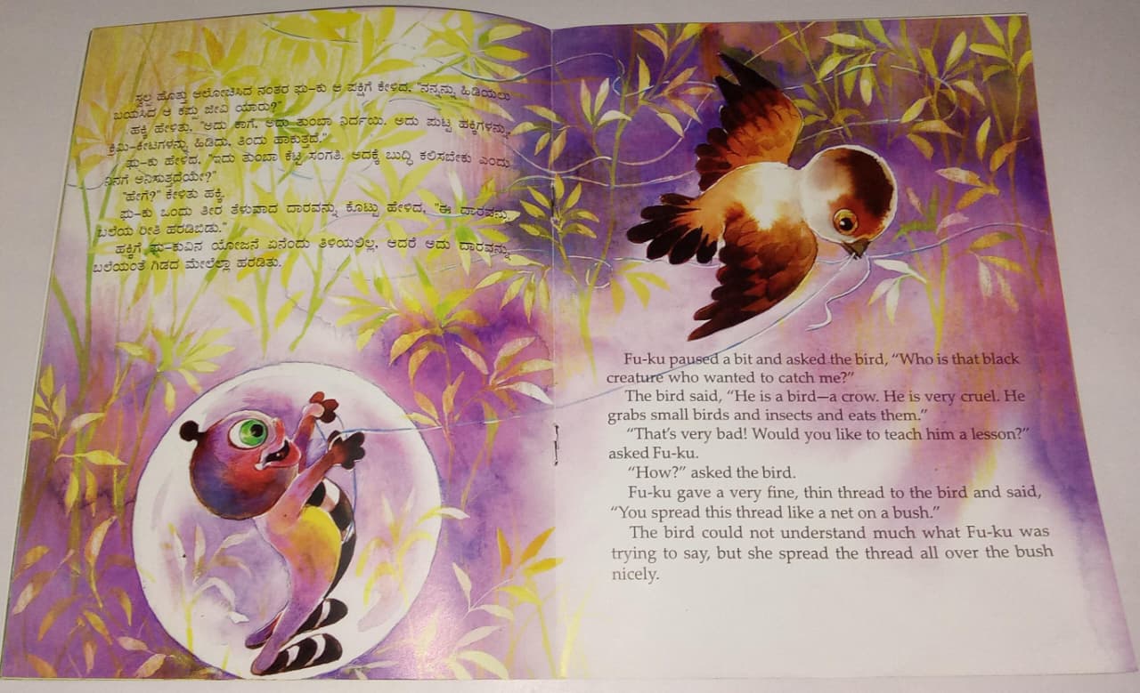 In the story Fu-Ku, an alien, visits the earth and meets a bird. There he observes how the use of firearms and bombs are destroying the beauty of the earth - birds and animals are getting equally affected by this hostile environment. This is a Bilingual book the text is deliberately simple to allow the two languages on the page to be as close as possible to each other, so one can be followed through the other.