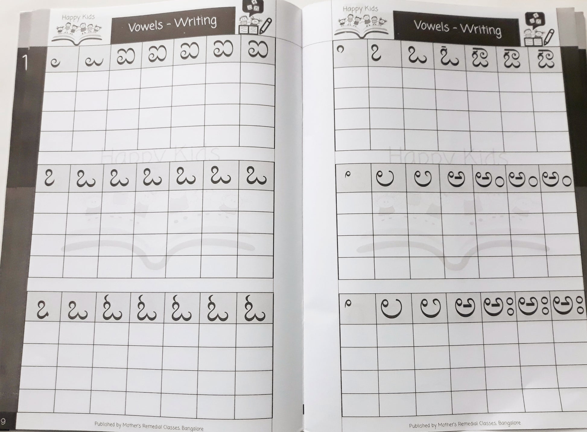 This book is an introduction to Kannada alphabets which vowels (Swaragalu) and consonants (vyanjanagalu). The formation of each letter is given in a step by step process so that children can see and learn in stages. The English equivalent for each alphabet is given with examples of words to get the right pronunciation. Child will learn letter formation, letter recognition and pronunciation.