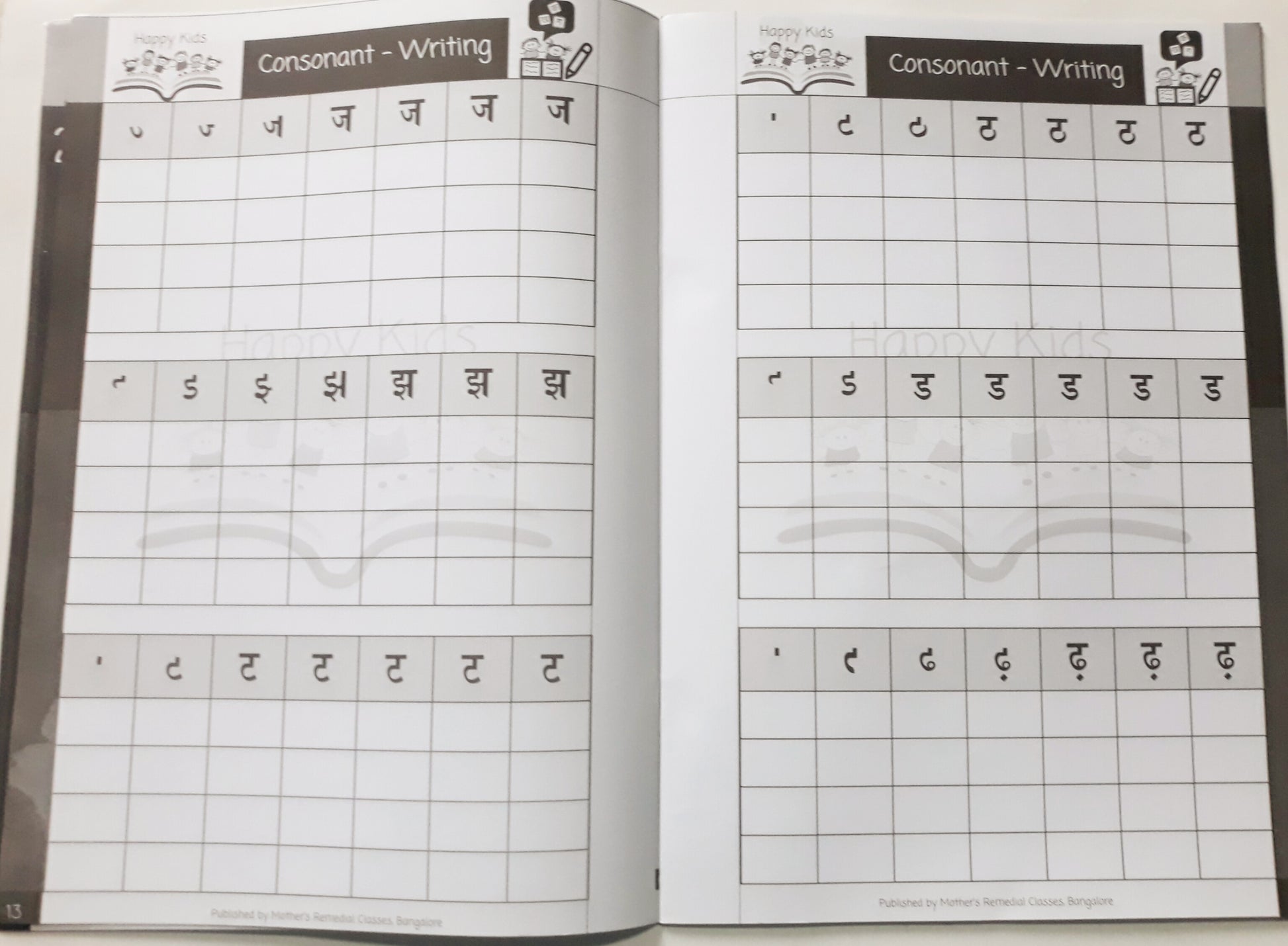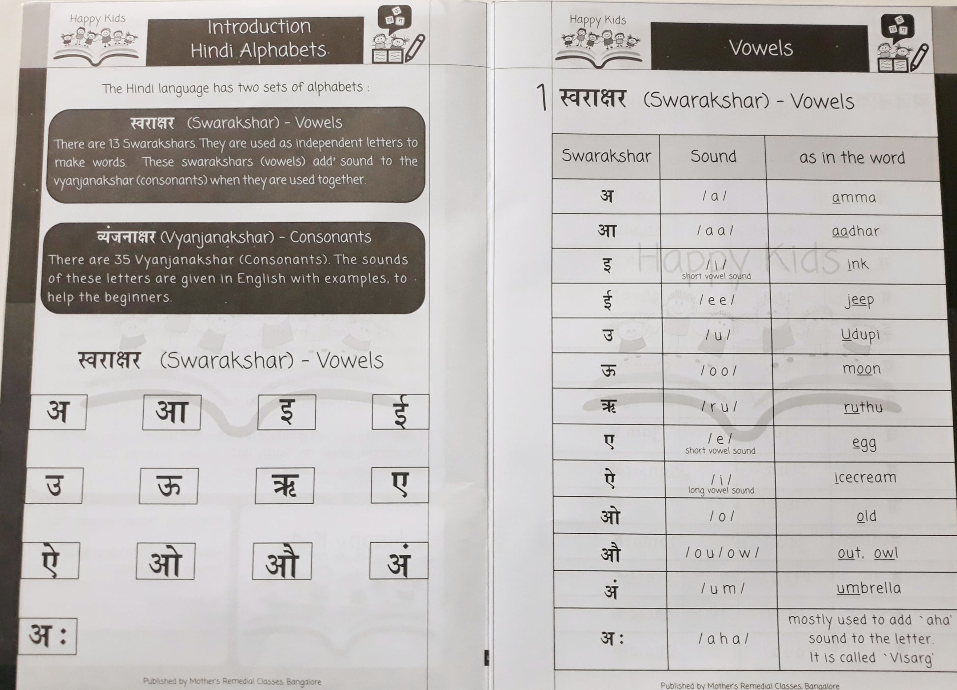 This book is an introduction to Hindi alphabets which are vowels (Swarakshar) and Consonants (Vyanjanakshar). The formation of each letter is given in a step by step process so that children can see and learn in stages. The English equivalent for each alphabet is given with examples of words to get the right pronunciation. The focus of this book is only on letter formation, letter recognition and pronunciation.