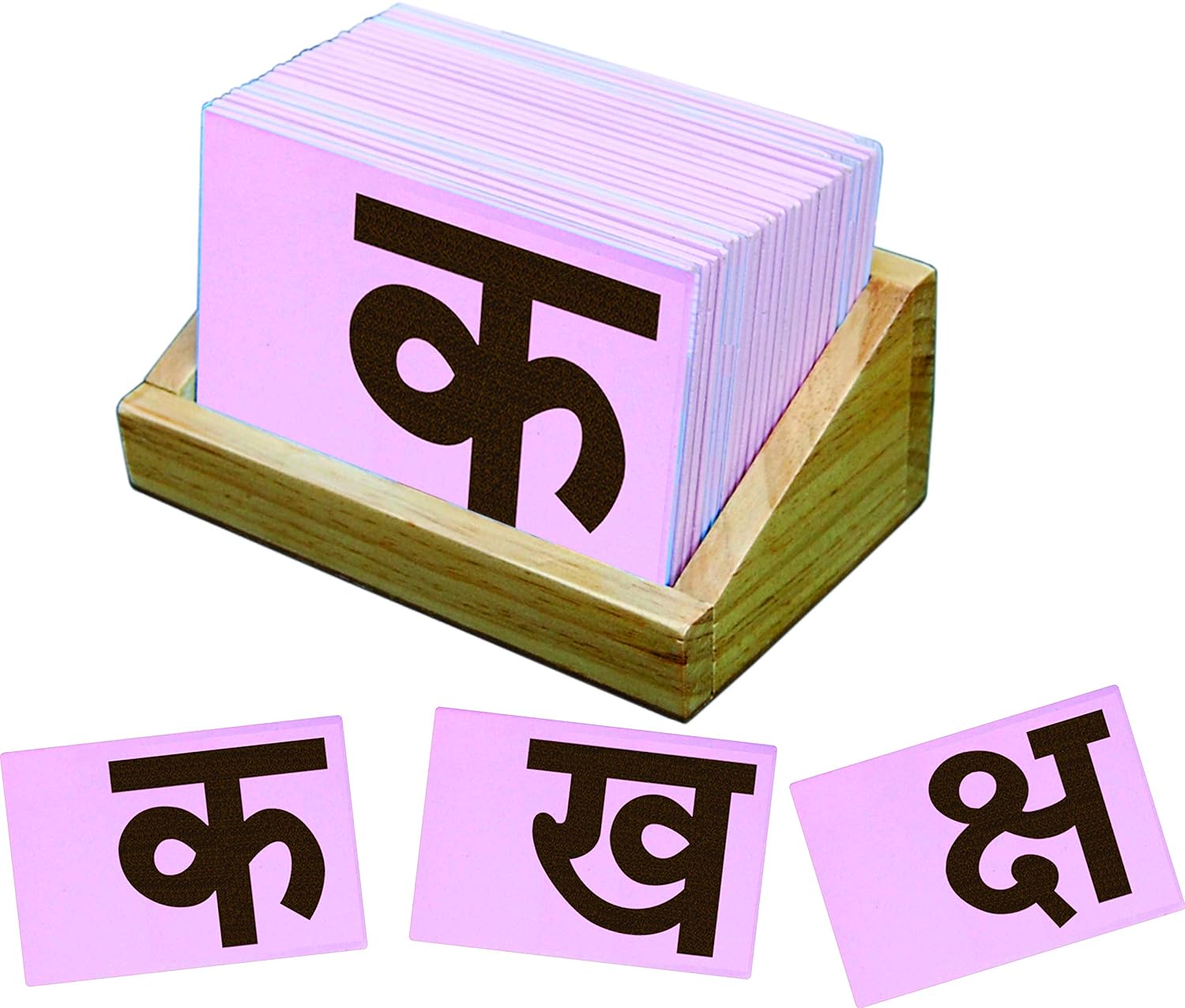 Sandpaper letters are an excellent way of introducing the alphabet of any language to children. These are standard Montessori materials meant for schools. The direct purpose of the sandpaper letters is to teach the child the sounds of the alphabet by means of muscular and visual memory. The child is encouraged to trace the symbol over and over again until the shape of the letter becomes a part of the child's muscle memory. The indirect purposes of the sandpaper letters are preparation for reading and writing. The material includes 36 set of cards with sandpaper letters stuck on them. All are consonants Painted Pink. Consonants are pasted towards right of the plate to give space in left for easy holding the plate.