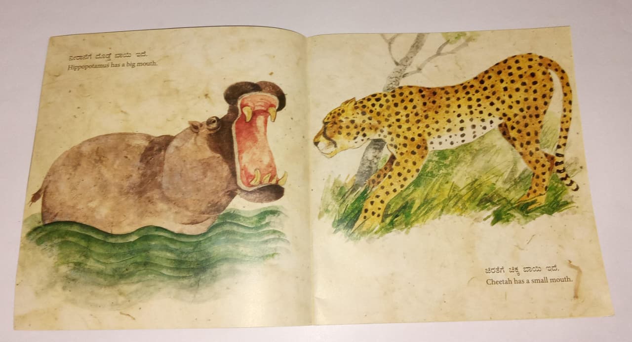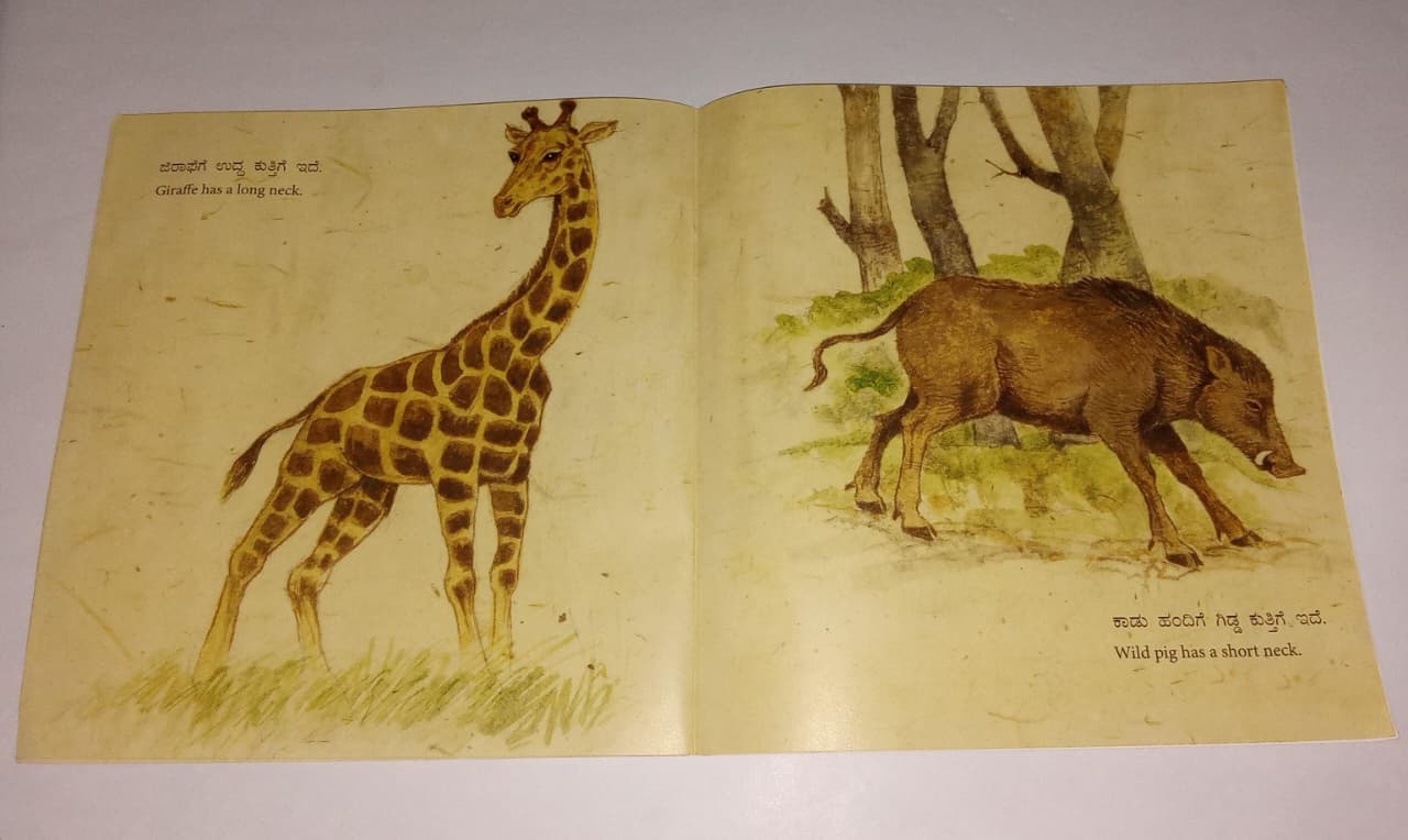 A picture book which tries to explain the opposite concepts of long & short and big & small through various features of different animals, Innovative illustrations simply make reading this book a pleasurable experience. This is a Bilingual book the text is deliberately simple to allow the two languages on the page to be as close as possible to each other, so one can be followed through the other.