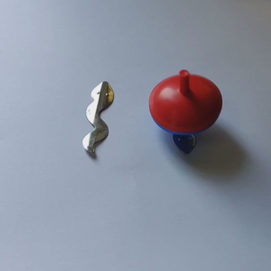 Steel snake moves when a top with built in magnetic disc with magnetic tips is riveted on the steel snake, shows magnetic induction. A wonderful science toy for children to enjoy snake - moves at the magnetic tip.