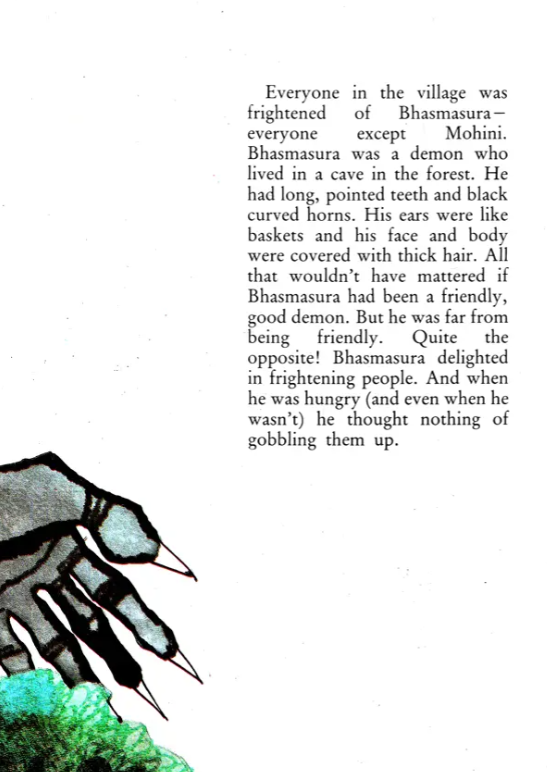 This is a fascinationg story about a courageous and determined little girl, Mohini, who does not hesitate to take on a demon who has been wreaking havoc.