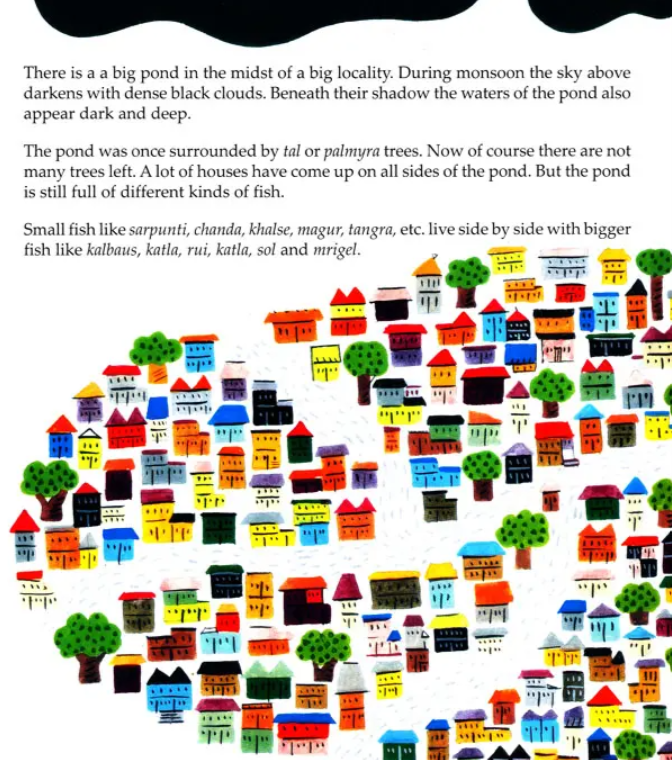 A sensitive tale about a pond and the marriage of two fishes and how the entire episode brings to life some existential issues which need to be addressed for a harmonious living. The commendable part is the contribution of the kids in managing a crisis situation. Beautifully illustrated by Debabrata Ghosh.