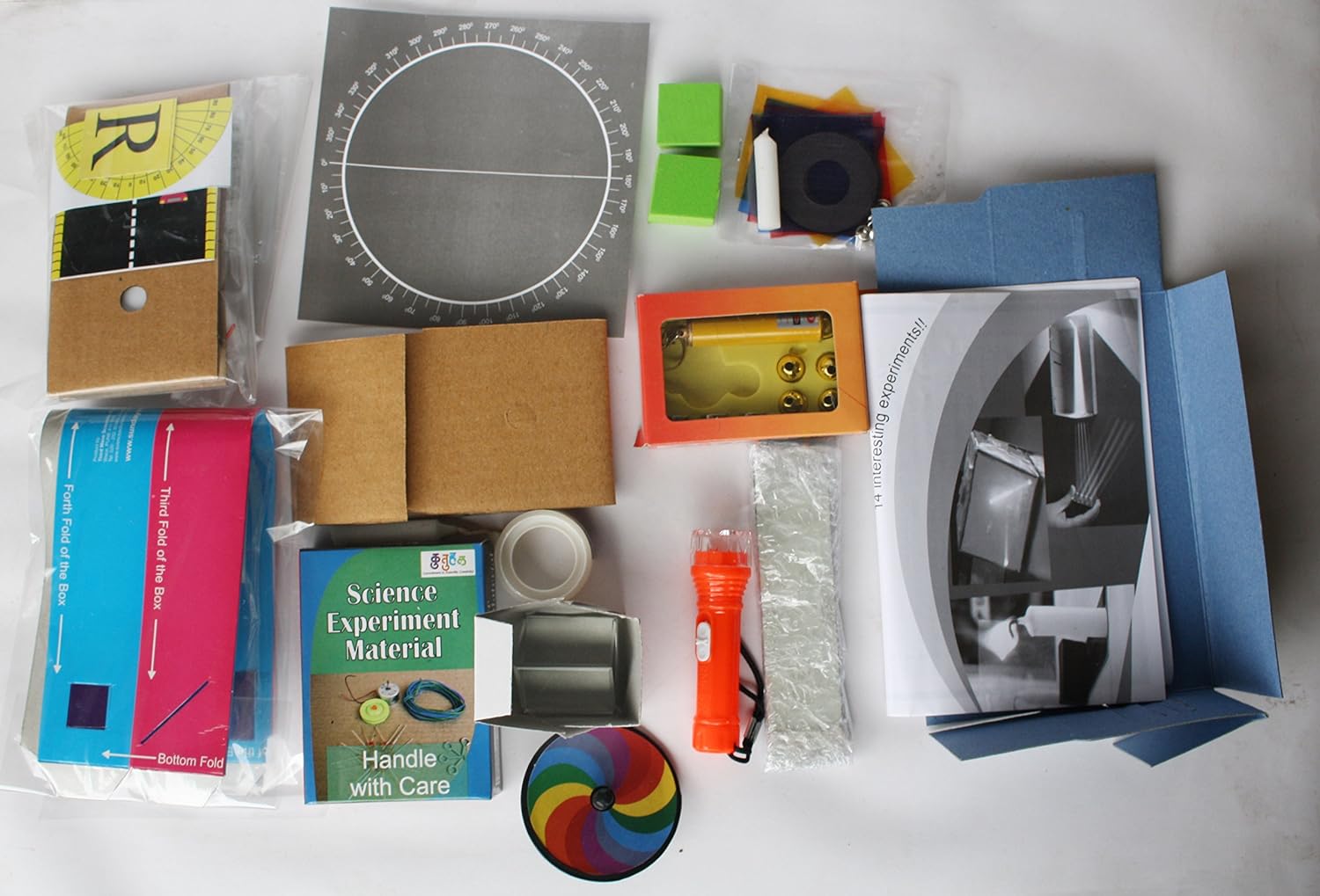 Science of Light activities involve a kit designed to teach young students the fundamental principles of light, including reflection, refraction, and dispersion. Experiments demonstrate how mirrors and lenses form real and virtual images, how a prism splits white light into a spectrum of colors, and how a glass slab can be used to study the bending of light and calculate the refractive index. These hands-on activities, which use components like an optical ray box, mirrors, lenses, and prisms, provide practical experience to develop scientific interest and understanding in students