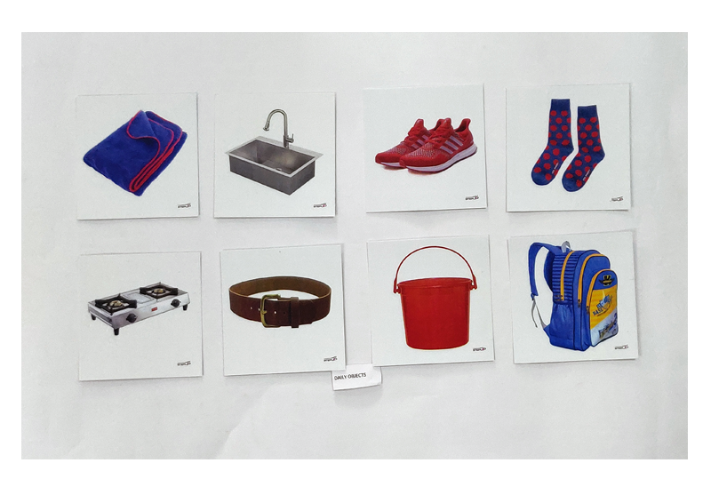48 picture flash cards featuring everyday objects are great for teaching basic language skills to preschool age children, Helps to develop logic, observation, and association powers and help in vocabulary development. These cards are also useful for children with autism, developmental delay, or speech & language delay. Details of card set belt, socks, uniform boy, uniform girl, Night pant, frock, T shirt, Shoes, spoon, bowl, gas stove, glass, cylinder, plate, washing sink, cup, Soccer, towel, napkin, mug, soap, bucket, toilet commode, wash basin, tooth brush, toothpaste, hair oil, shampoo, umbrella, tiffin box, water bottle, fan, watch, nail cutter, specks, comb, mirror, chair, table, scale, pencil box, school bag, books, rubber, pencil, sharpener, pen, talcum powder.