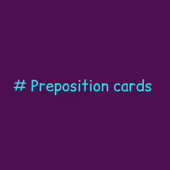 A preposition is a word that links a noun, pronoun, or noun phrase to some other part of the sentence. Prepositions can be tricky for English learners. Prepositions are big little words that make or mark a good English sentence and are so necessary for clear expression. This set consist of 25 colourful picture cards, 25 matching sentence building strip cards. List of Prepositions Behind, Top, Bottom, Into, Second, Third, Last, Above, By, Away, In, Out, Under, Front, Through, Over, Middle, Up, Together, On, Between, Across, Inside, Down, First.