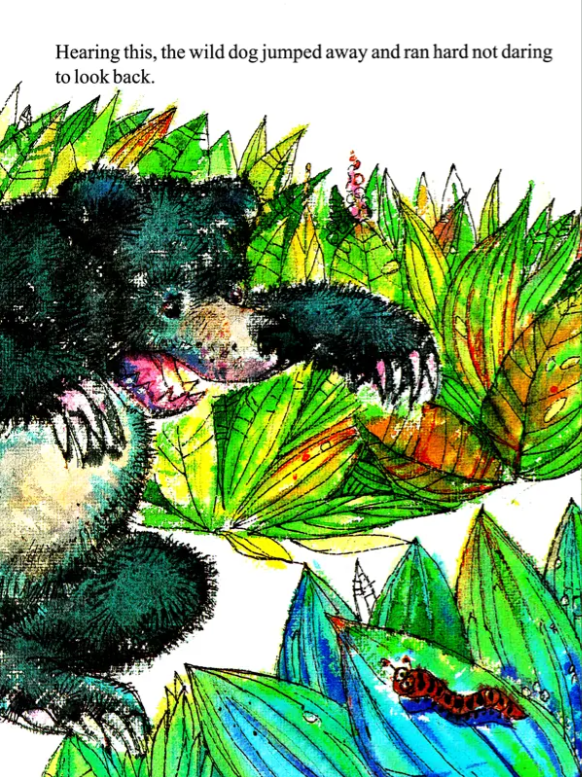 An interesting tale about four dogs and how the inherent wilderness of one his peerage. To be eventually defeated by an even smarter bear. Delightful visuals by Durlabh Bhattacharya add colour to the text