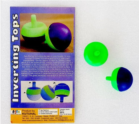 A pair of Inverting Tops which when spun will spontaneously turn upside down to spin on its narrow stem. It can be used in class or as a fun toy