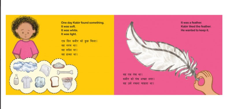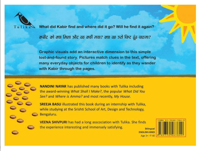 What did Kabir find and where did it go? Will he find it again? Graphic visuals add an interactive dimension to this simple lost-and-found story. Pictures match clues in the text, offering many everyday objects for children to identify as they wander with kabir through the pages. This is a Bilingual book the text is deliberately simple to allow the two languages on the page to be as close as possible to each other, so one can be followed through the other.